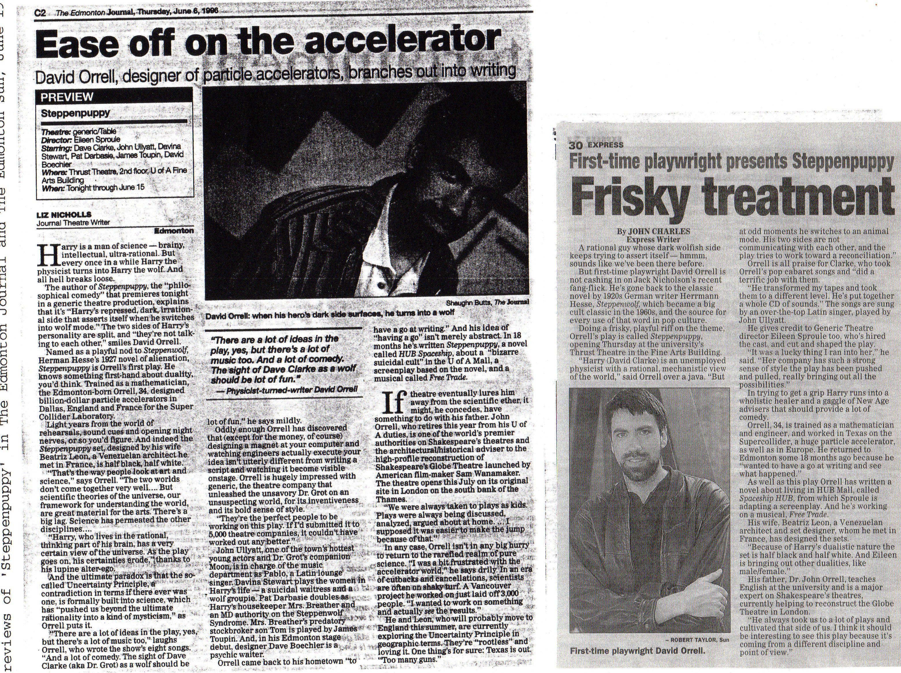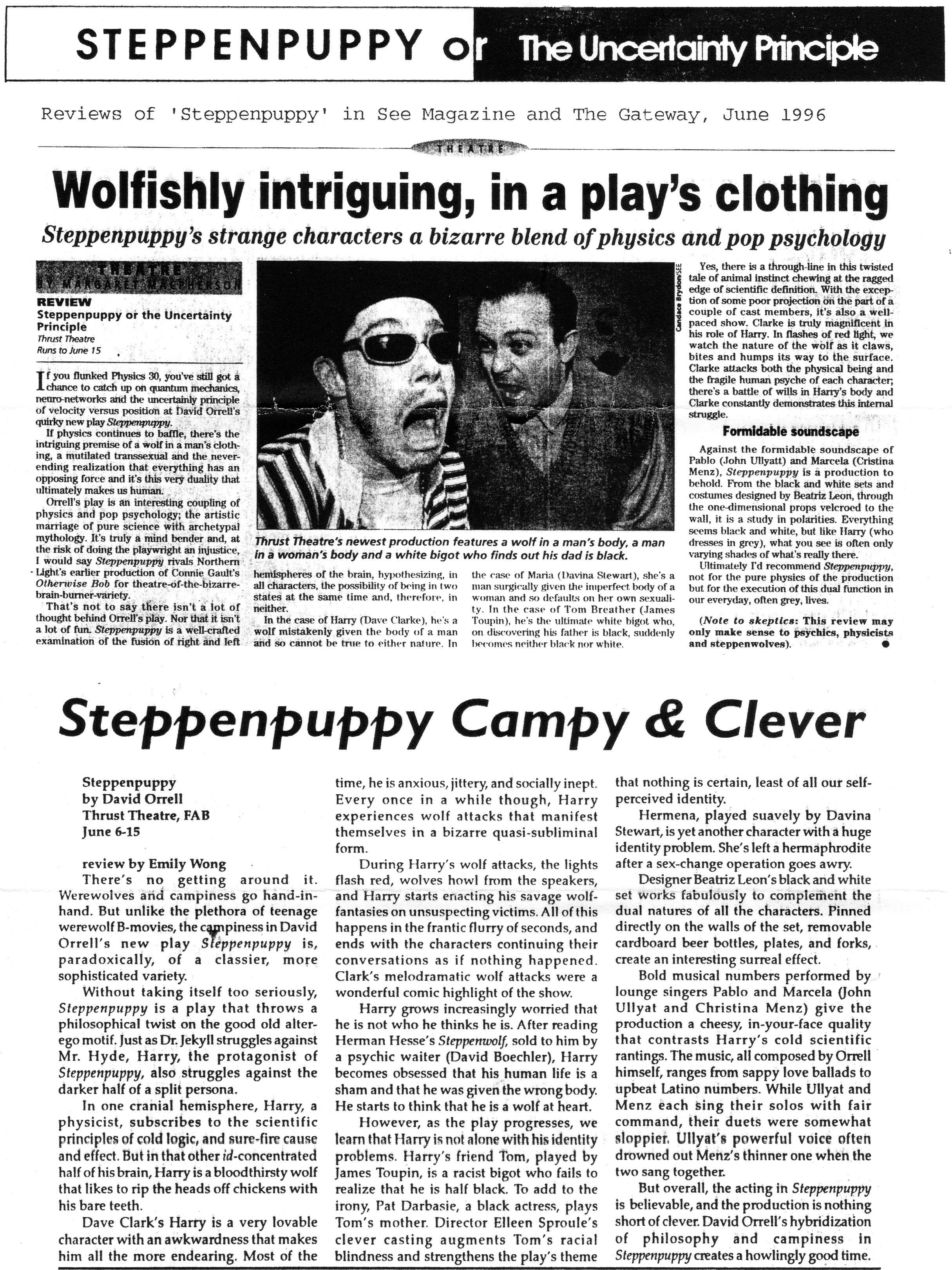Performed at the Thrust Theatre in Edmonton, Canada, June 6-15, 1996